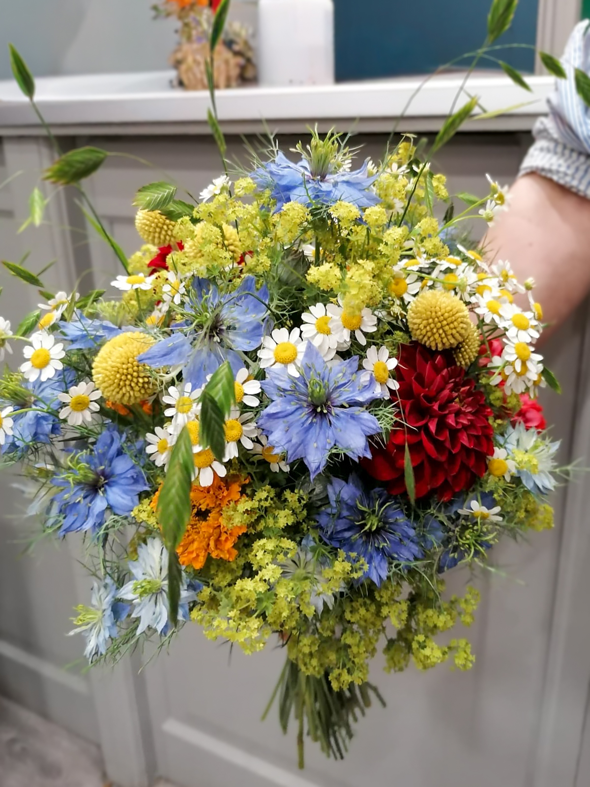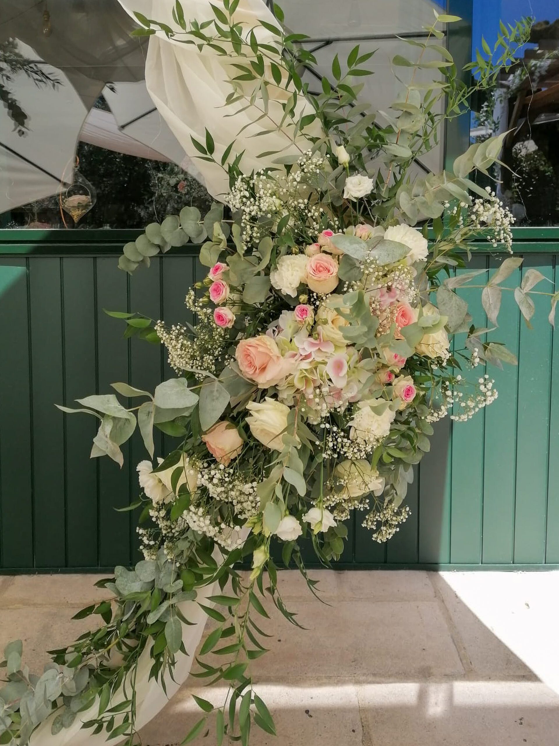 Côté mariage, nous vous proposons une gamme élaborée de créations allant du bouquet de la mariée, boutonnières, en passant par les couronnes de fleurs, bracelets, éléments de coiffure et même divers décors, arche.